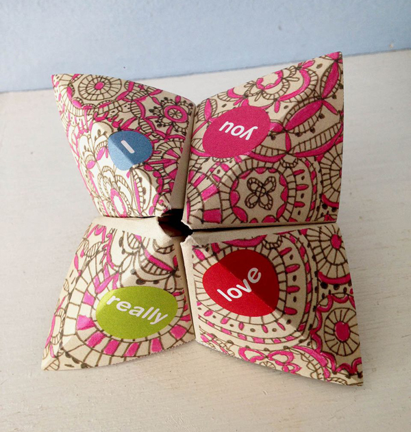 Valentine’s Day Cootie Catcher. Print out the template and fold into a cootie catcher.