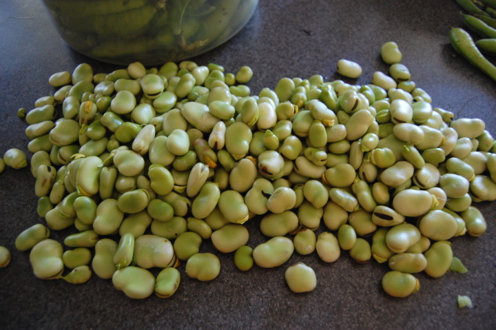 This is the remainder of my fava bean harvest. I probably could have gotten some more beans out of the plants but I needed to make room for the tomatoes, so I picked the rest of the crop yesterday and pulled up the plants for my compost.